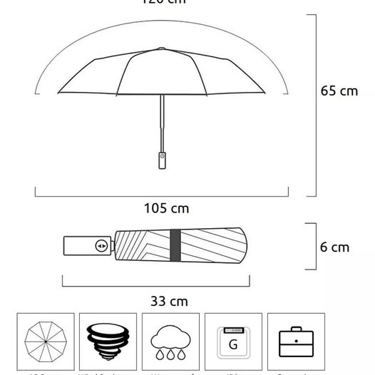 - Presione el botón para abrir, la sombrilla se abre automáticamente, luego presione el botón para cerrarla automáticamente, recoja la sombrilla y ajuste haciendo clic.