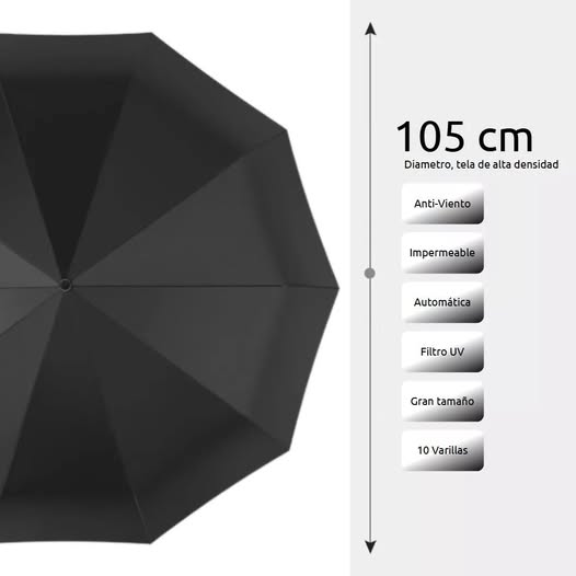 - Protéjase del sol y la lluvia con esta sombrilla automática de excelente calidad.
